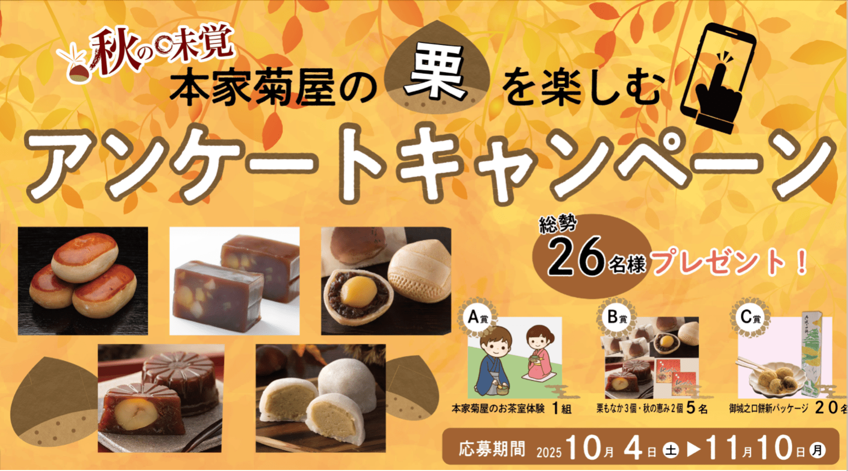 こだわりの栗素材を使用した本家菊屋の栗商品ついて、アンケートキャンペーンを実施いたします。