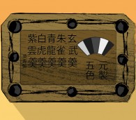 弊店本店に江戸時代から掲げられております羊羹の看板がございます。 右手に5種類の羊羹を表した5色の扇…